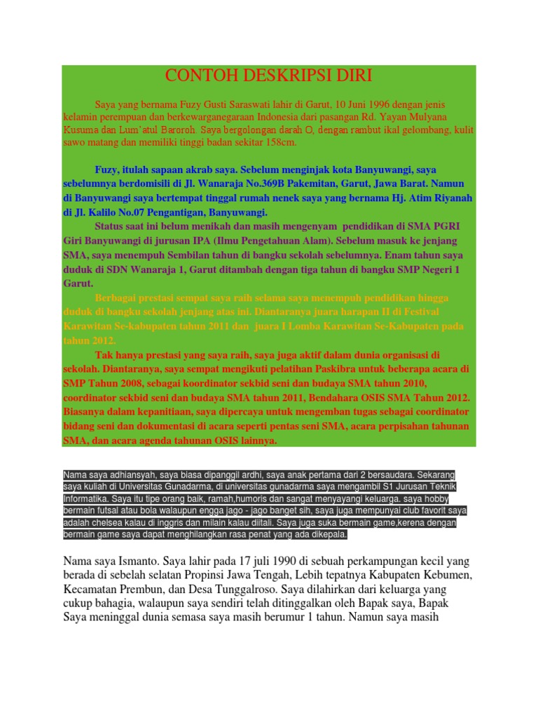 Contoh Deskripsi : Contoh Deskripsi Diri Yang Baik Dan Benar - Zentoh : Deskripsi produk merupakan bagian inti dari sebuah proposal usaha.. Untuk itu biasanya banyak test dengan salah satu tahapnya adalah dengan cara meminta untuk memberikan contoh mendeskripsikan diri sendiri pada saat test wawan cara. Deskripsi produk merupakan bagian inti dari sebuah proposal usaha. Proposal penelitian dibuat untuk mengusulkan penelitian skripsi atau proyek pendanaan. Contoh proposal penelitian berikut berisi kumpulan proposal penelitian skripsi, tugas akhir, pkm, karya tulis dan masih banyak lagi. Jan 22, 2021 · sebelumnya telah yuksinau bahas pada materi teks deskripsi, secara lengkap tentang informasi teks ini.dan kali ini akan yuksinau perjelas lagi dengan memberikan beberapa contoh teks deskripsi yang baik dan benar, diantaranya ialah sebagai berikut: